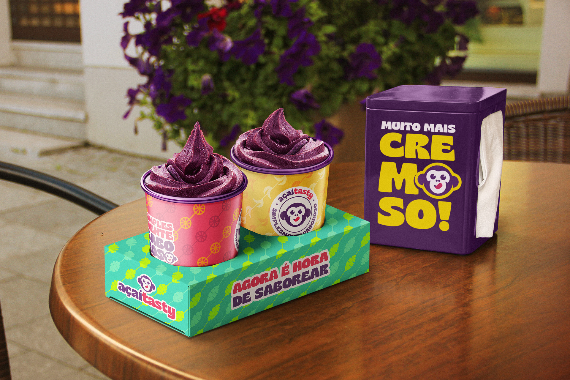 Açaí Tasty é uma franquia do interior de São Paulo que produz e vende seu próprio açaí com diversas combinações e complementos, resultando em um produto de sabor único, ou, nas palavras do próprio fundador: “um açaí simplesmente saboroso”. A inspiração para o símbolo veio do macaco Parauacu (Pithecia monachus) que vive na Amazônia e se alimenta do fruto do açaí. As cores, elementos gráficos e tipografia reforçam a identidade descontraída e moderna da empresa e também representam a diversidade de produtos e combinações presentes no cardápio.