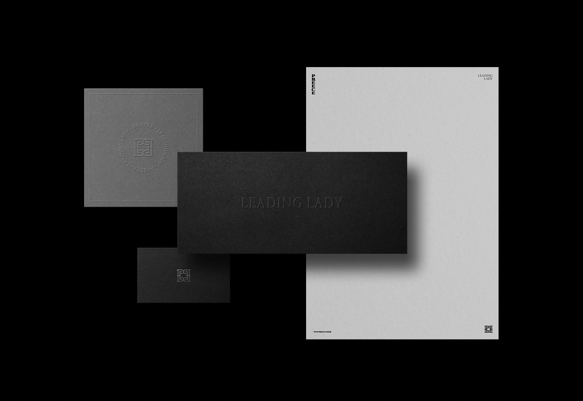 Preece is a high fashion clothing confection located in São Paulo/Brazil wich works with classical and timeless concepts of the huge woman's clothing universe, using techniques that combine refinement and convenience. With this project, the company wanted to be visually positioned as the biggest international brands of the segment. The challenge was to build a visual identity with strong personality and elegance without being as trendy as fast-fashion clothing brands.
